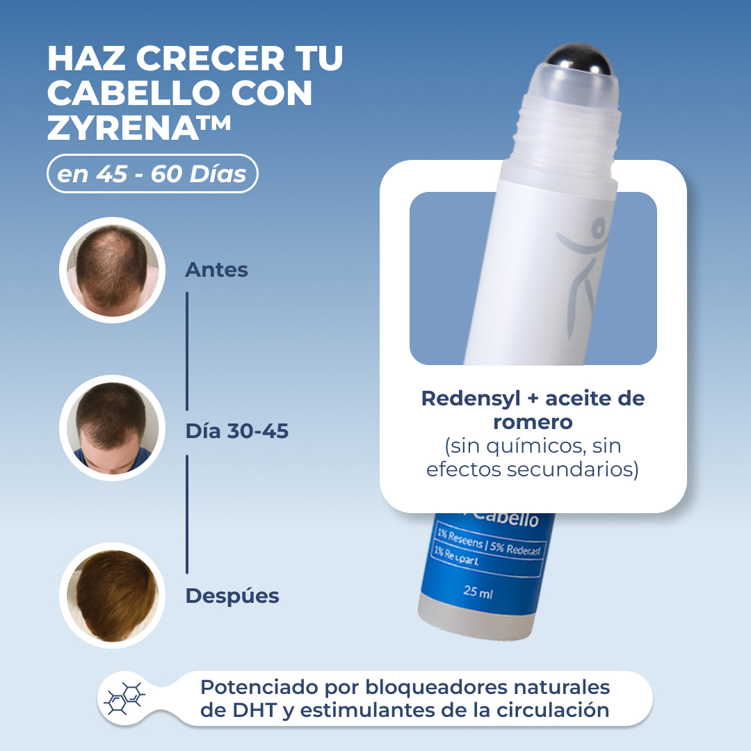 ¿Cansado de que se noten esas zonas con menos pelo? Con Zyrena™ puedes volver a sentirte bien contigo mismo y recuperar tu confianza.